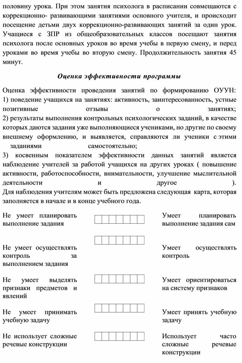 Оценка эффективности проведения занятий по формированию ОУУН: