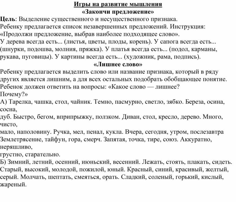 Ребенку предлагается выделить слово или название признака, который в ряду других является лишним, а для всех остальных подобрать обобщающее понятие. Ребенок должен ответить на вопросы: «Какое слово — лишнее?