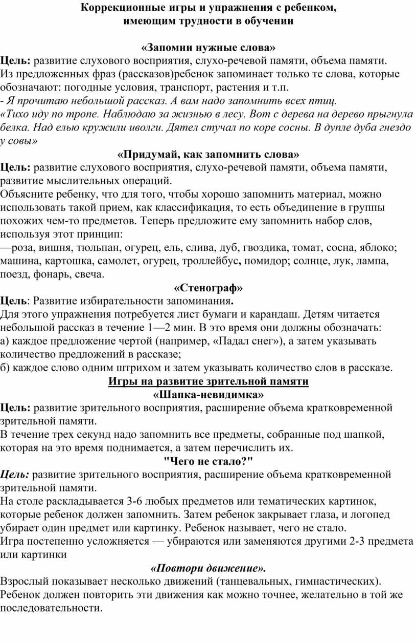 Цель: развитие слухового восприятия, слухо-речевой памяти, объема памяти, развитие мыслительных операций.
