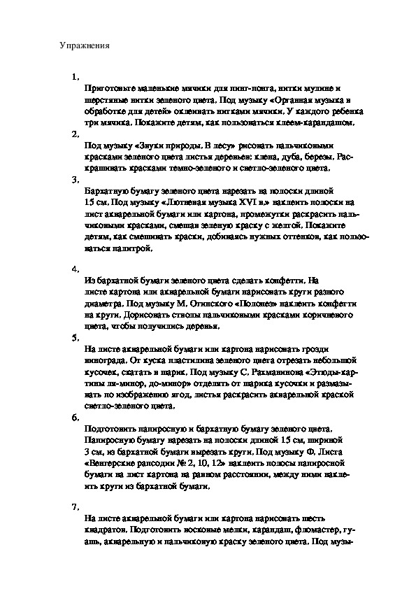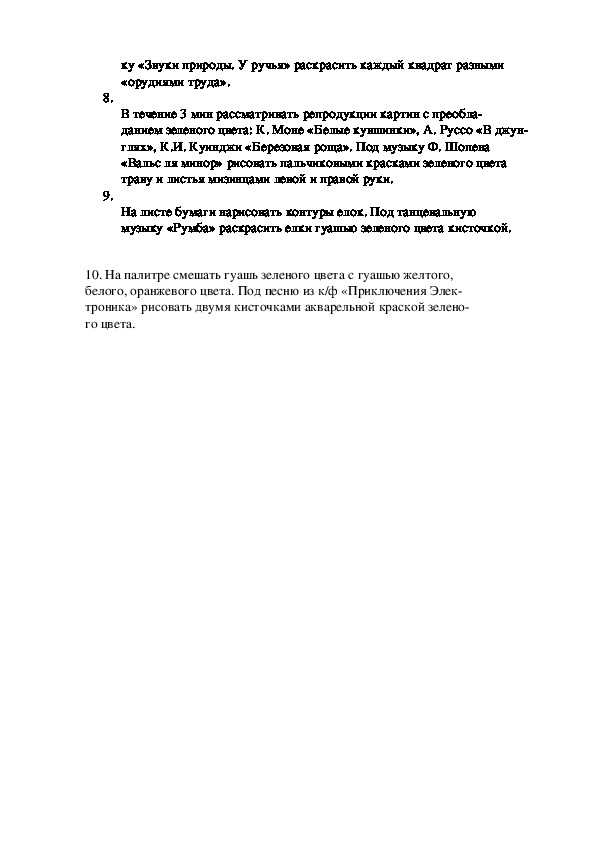 ашь, акварельную и пальчиковую краску зеленого цвета. Под музы8.
