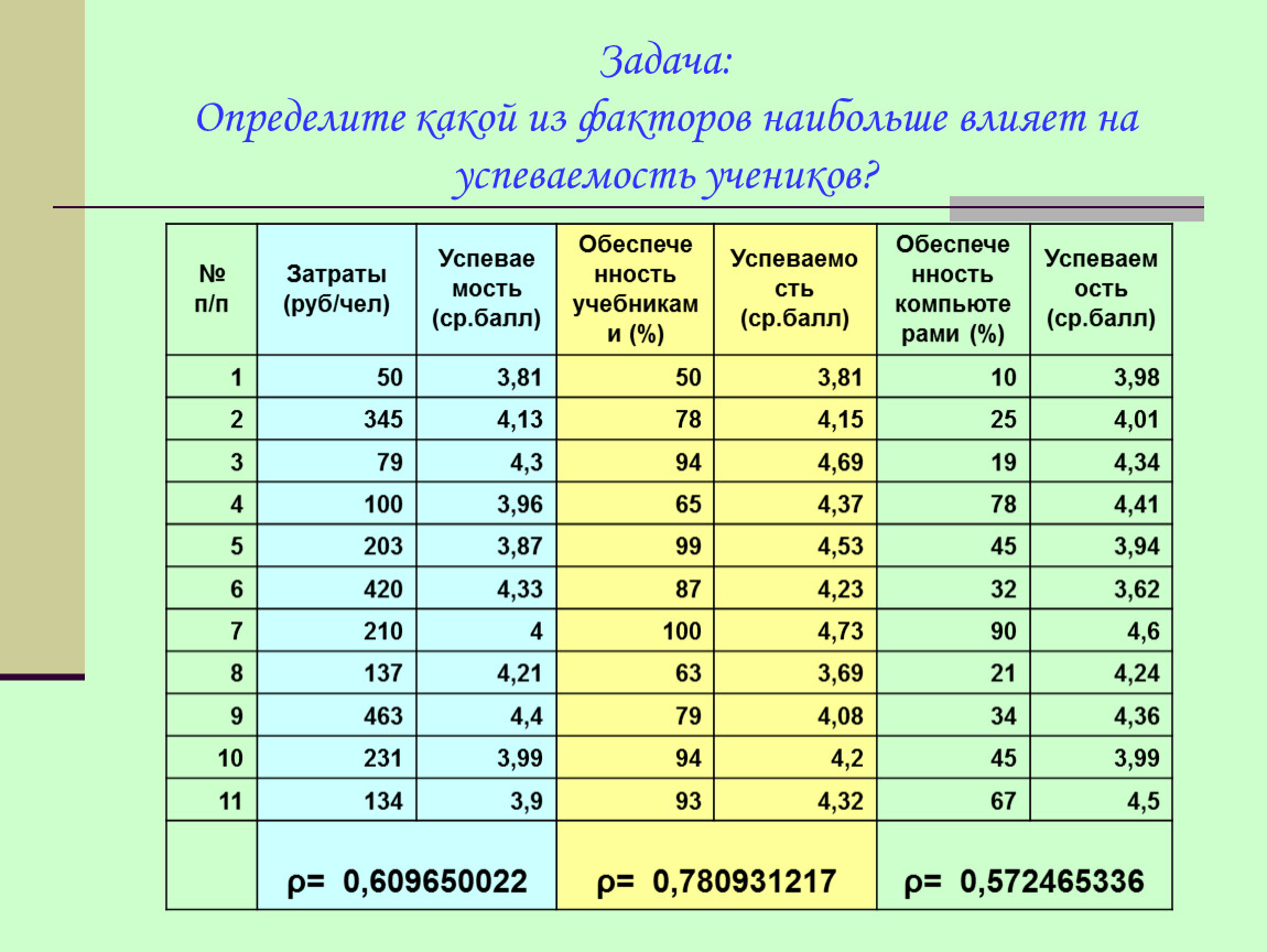 Задача: Определите какой из факторов наибольше влияет на успеваемость учеников?