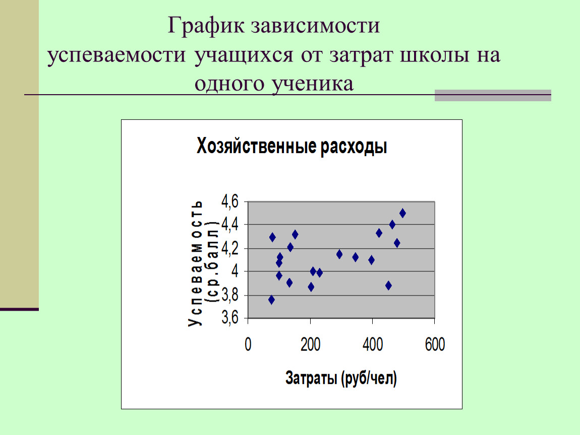 Итоги сбора статистических данных по хозяйственным затратам школы на одного ученика (В) и их успеваемости (А)