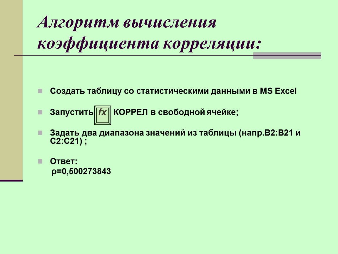Алгоритм вычисления коэффициента корреляции: