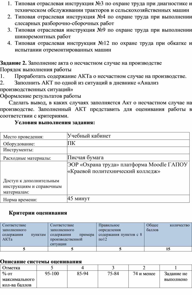 - воспроизведение в письменной и устной форме содержания инструкции по ОТ в профессиональной деятельности |