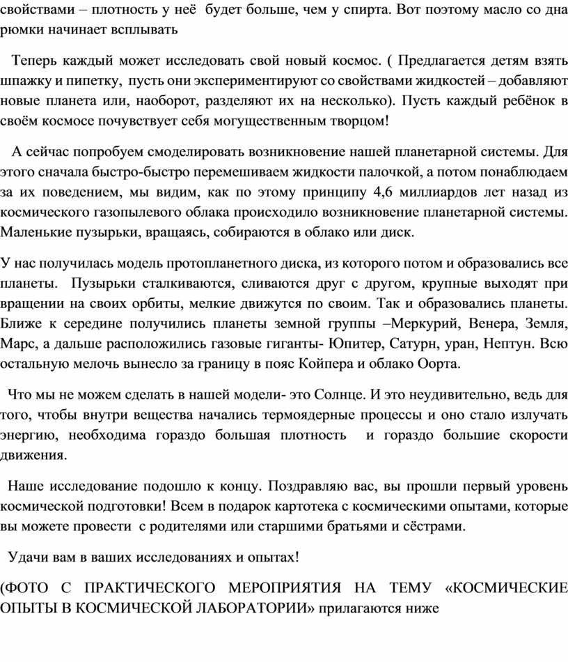 (ФОТО С ПРАКТИЧЕСКОГО МЕРОПРИЯТИЯ НА ТЕМУ «КОСМИЧЕСКИЕ ОПЫТЫ В КОСМИЧЕСКОЙ ЛАБОРАТОРИИ» прилагаются ниже