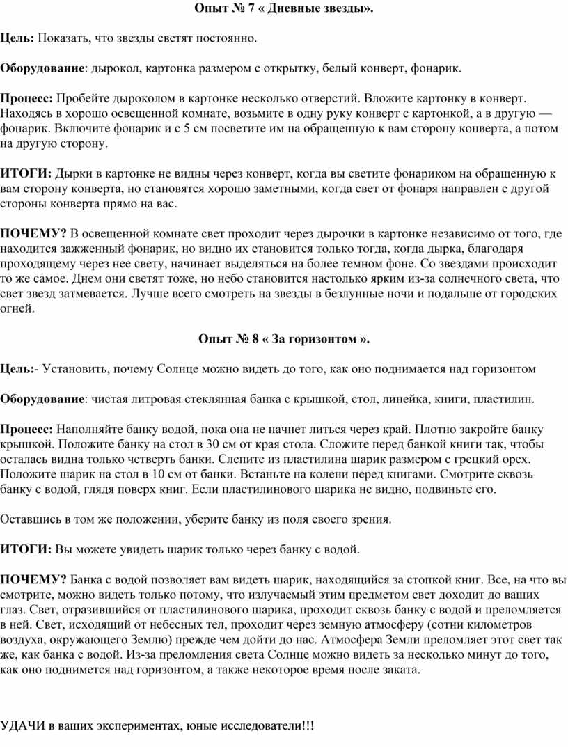 Опыт № 8 « За горизонтом ».