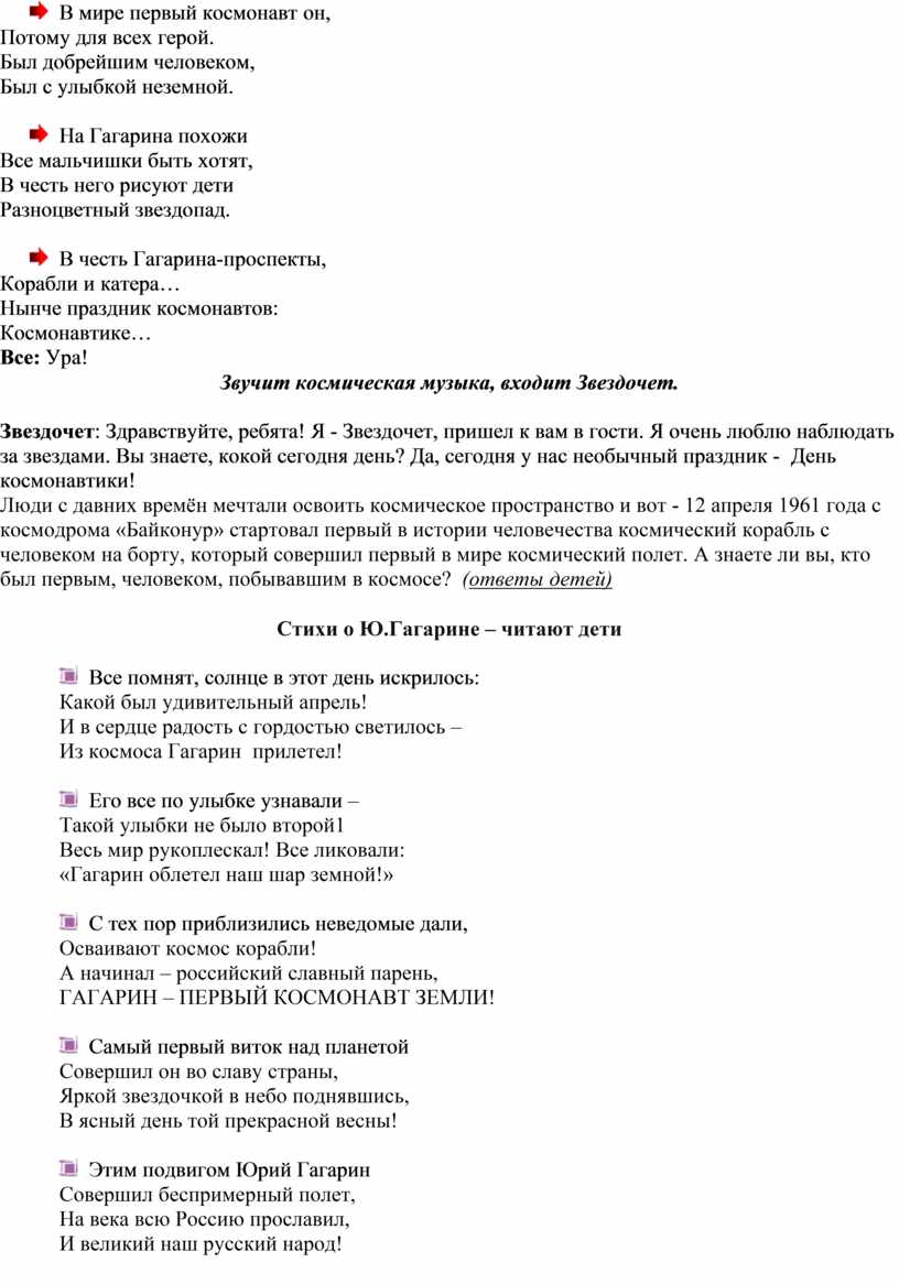 Стихи о Ю.Гагарине – читают дети