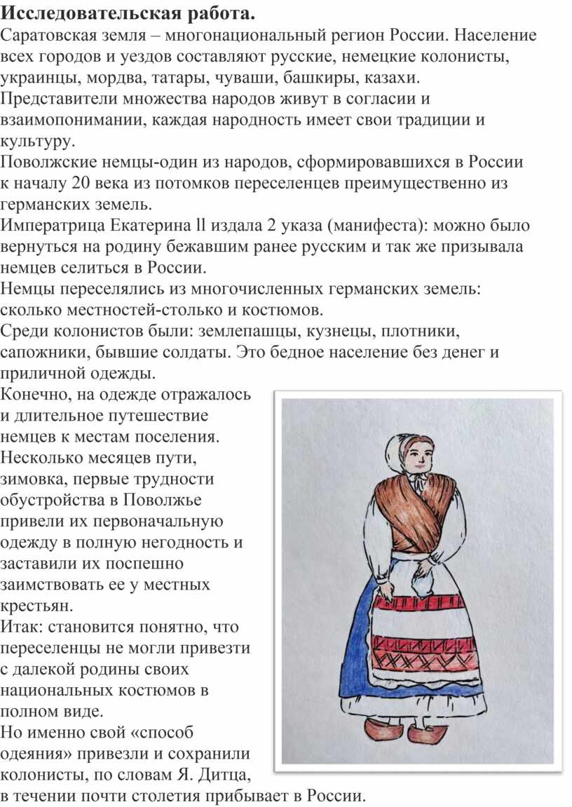 3. Исследовательская работа. Из истории костюма немцев Поволжья Саратовской губернии.