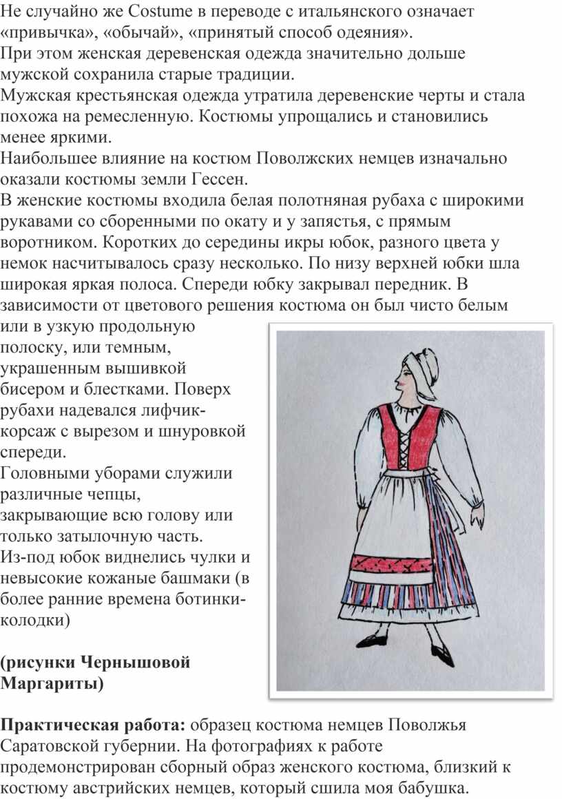 4. Практическая работа: образец костюма немцев Поволжья Саратовской губернии.