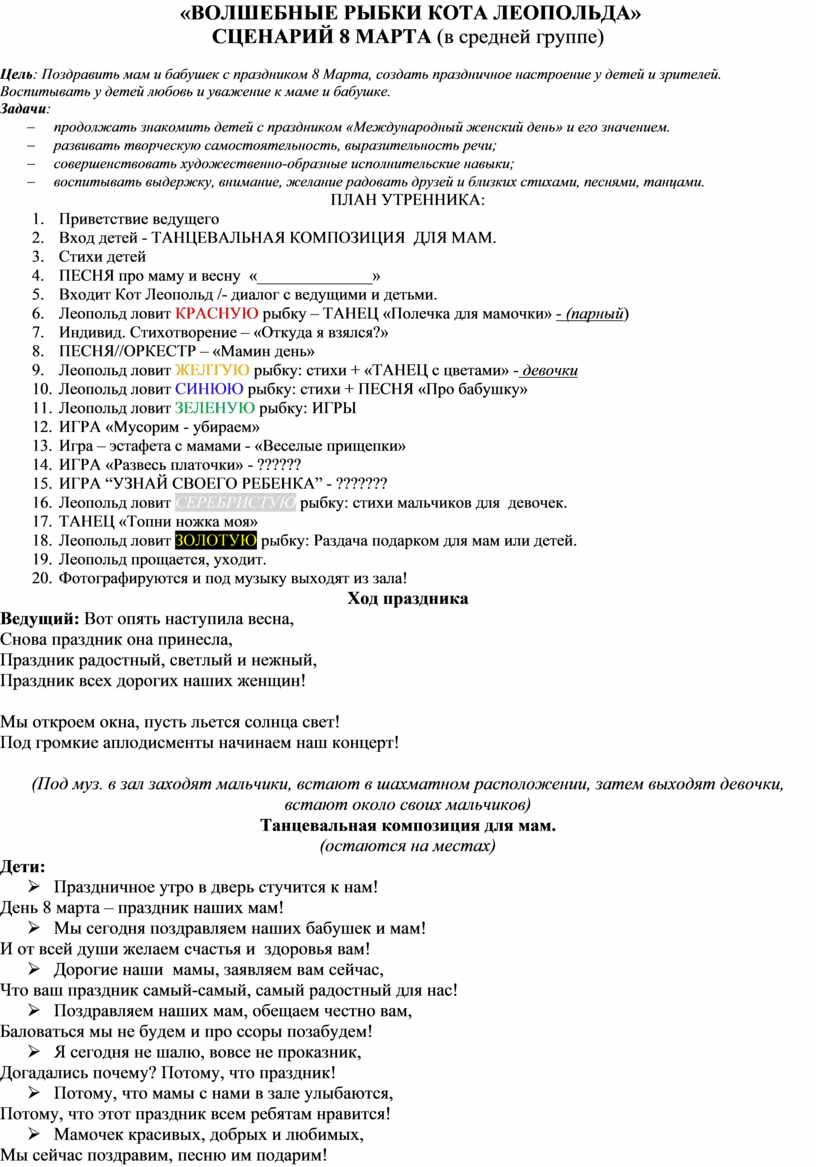 СЦЕНАРИЙ 8 МАРТА (в средней группе)