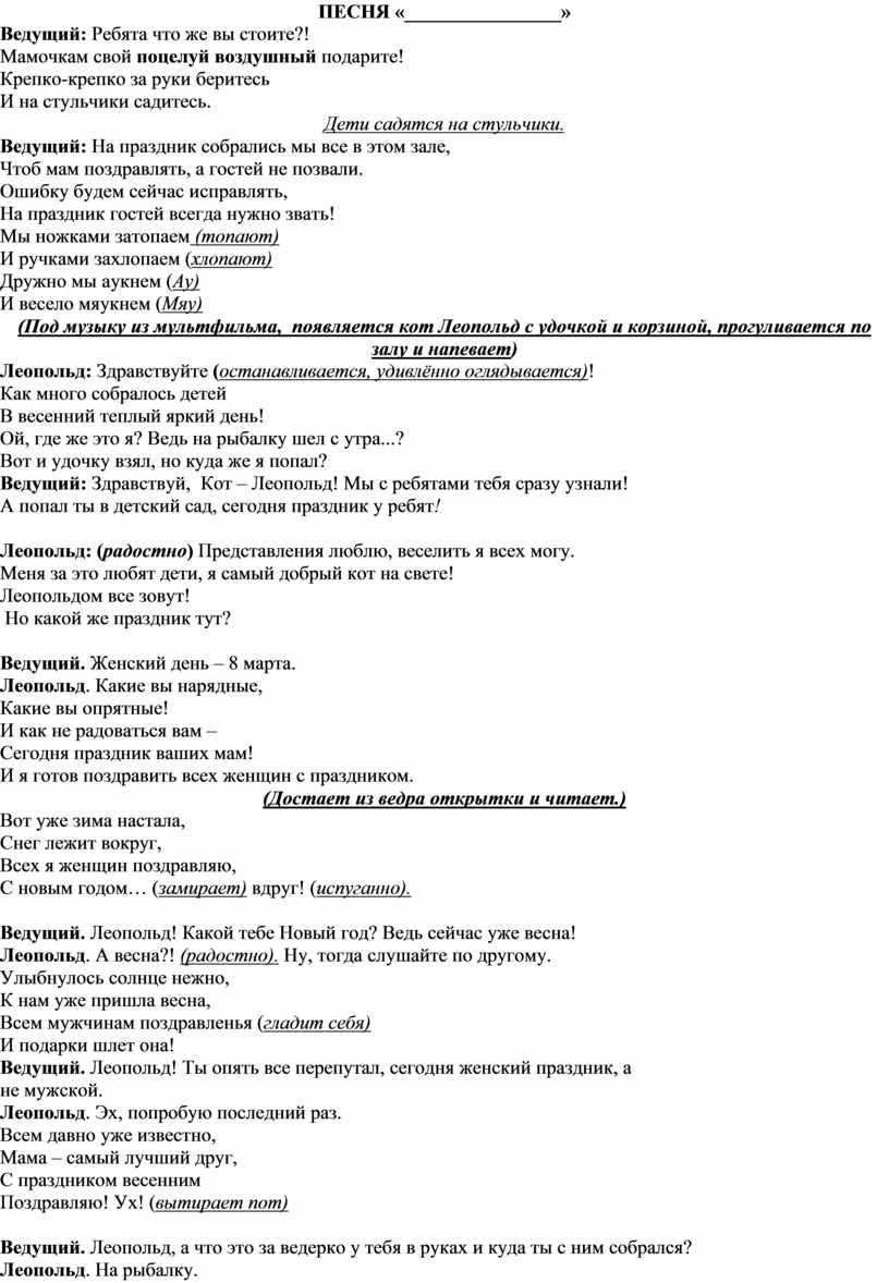Ведущий: Здравствуй, Кот – Леопольд! Мы с ребятами тебя сразу узнали!