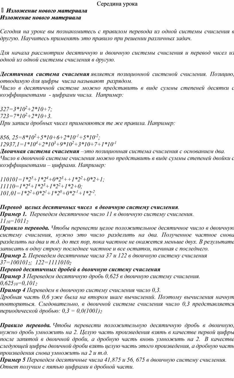 10.2.1.1 переводить целые числа десятичной системы счисления в двоичную и обратно. |