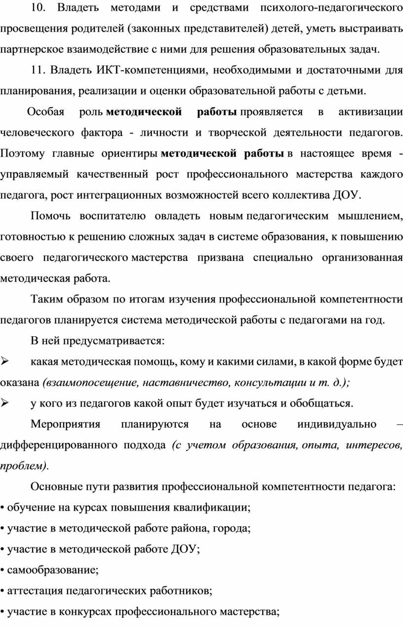 В профстандарте в п. 4.5, перечислены профессиональные компетенции педагога дошкольного образования: