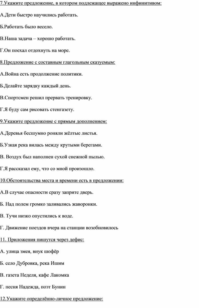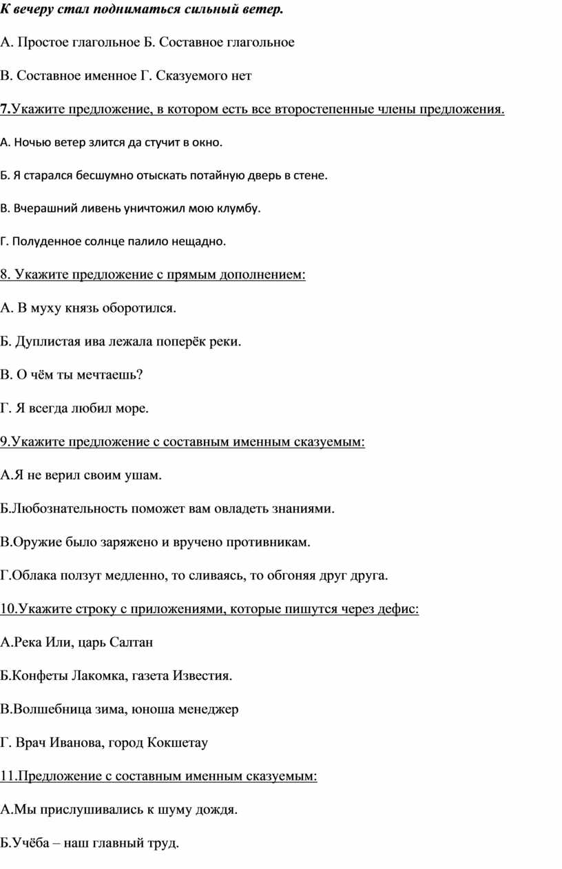 7.Укажите предложение, в котором есть все второстепенные члены предложения.