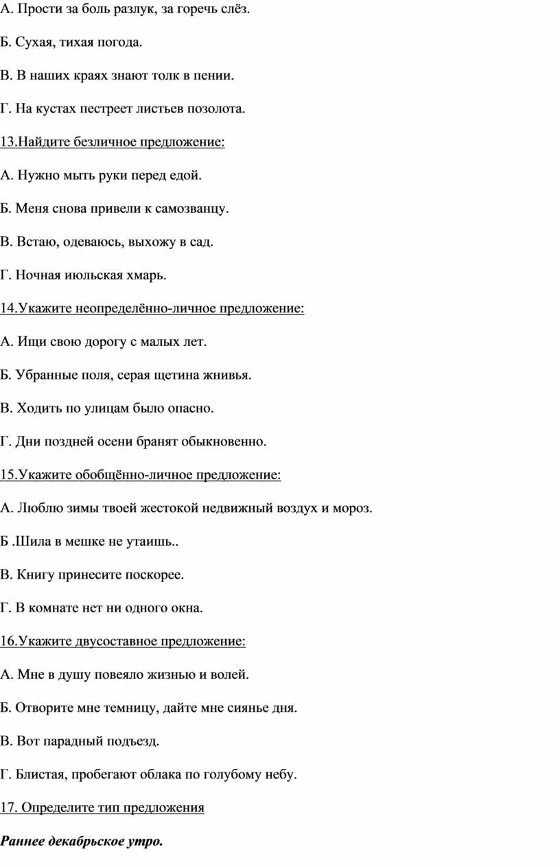 17. Укажите тип предложения