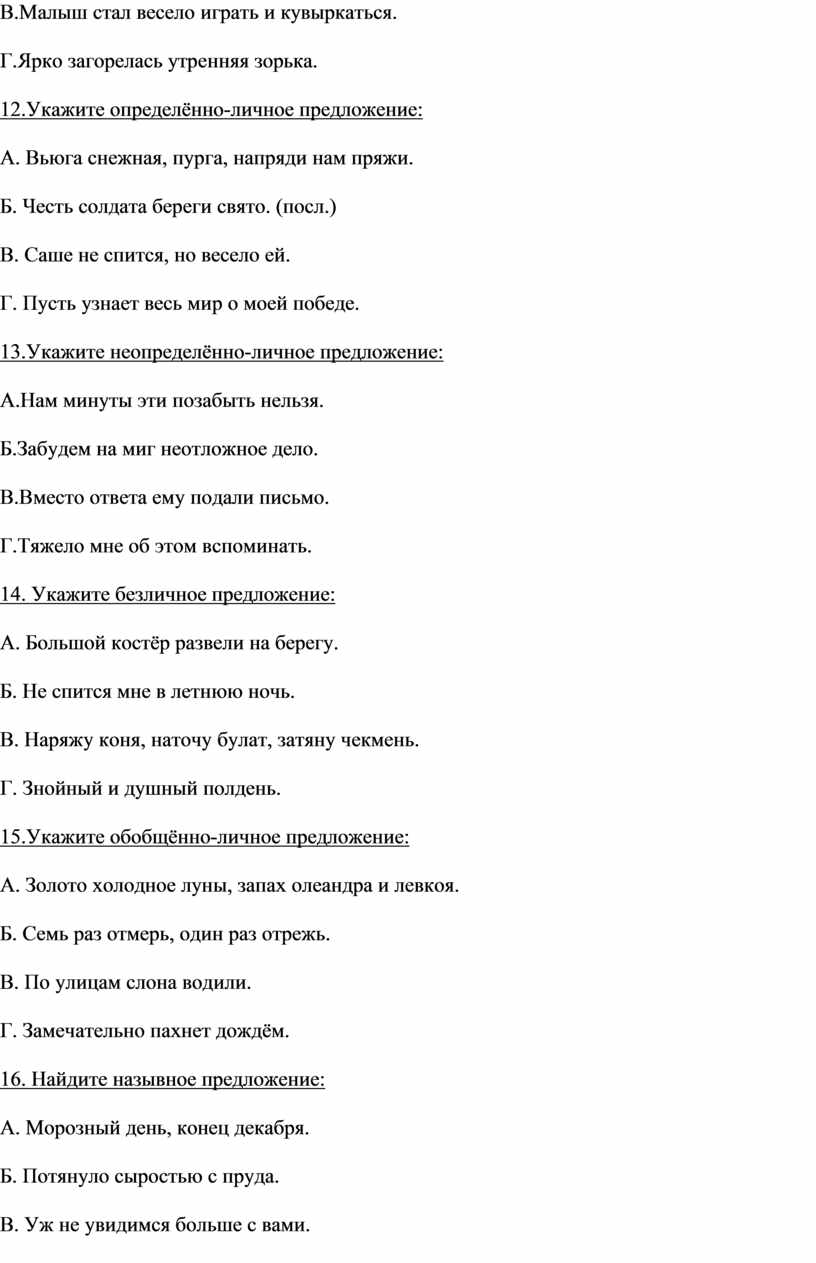 Г. Односоставное неопределённо-личное