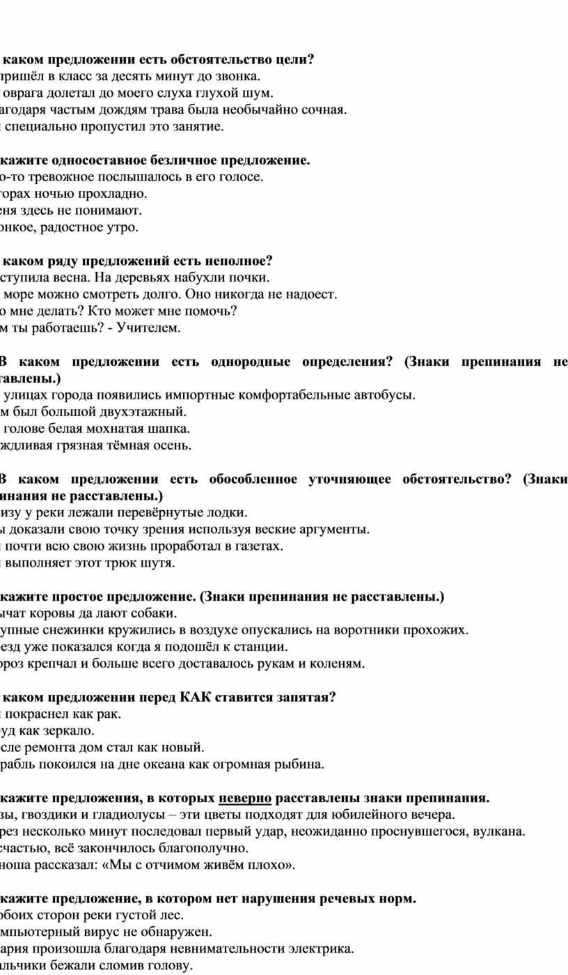 20. Укажите простое предложение. (Знаки препинания не расставлены.)
