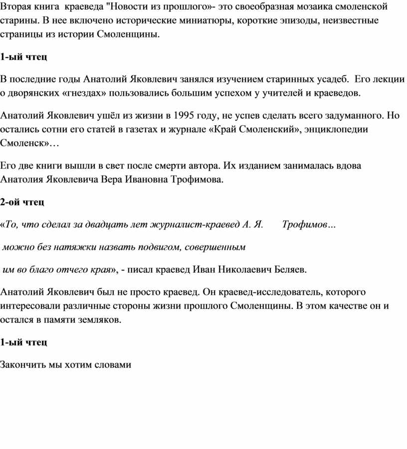 «То, что сделал за двадцать лет журналист-краевед А. Я. Трофимов…