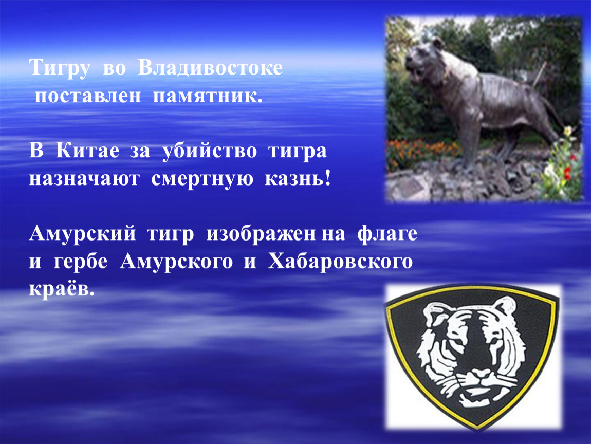 Амурский тигр изображен на флаге и гербе Амурского и Хабаровского краёв.
