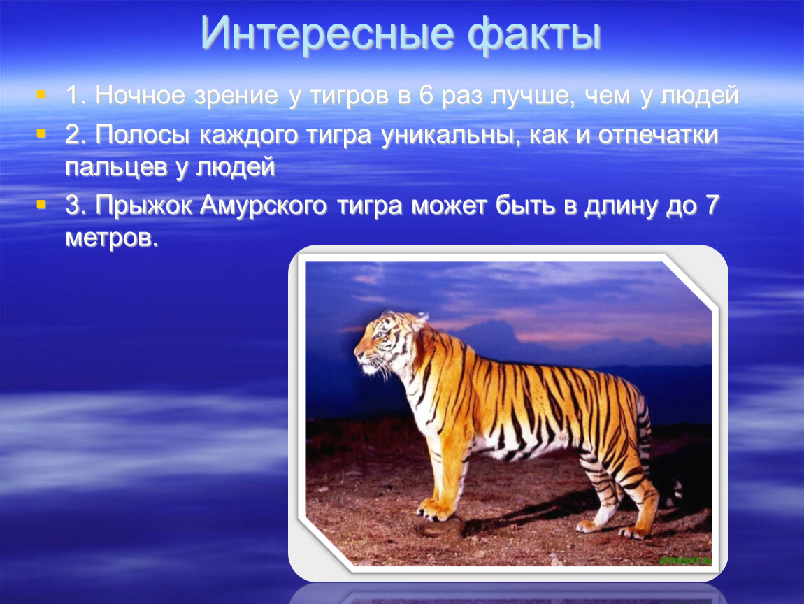 1. Ночное зрение у тигров в 6 раз лучше, чем у людей