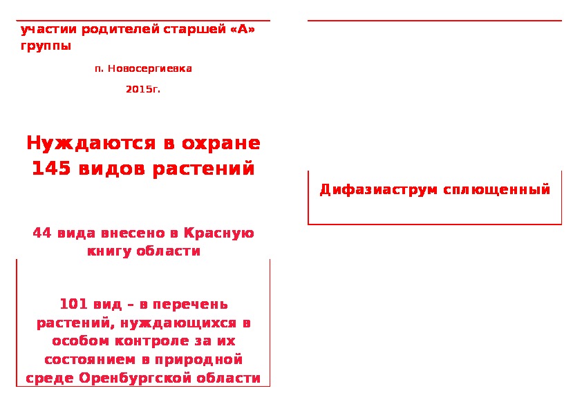 "Красная книга Оренбургской области. Растения" - создана при участии родителей старшей группы на основании данных из Красной книги России.