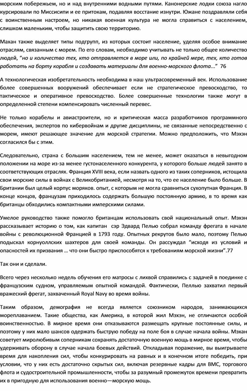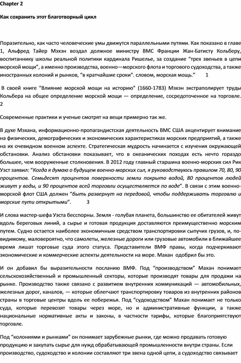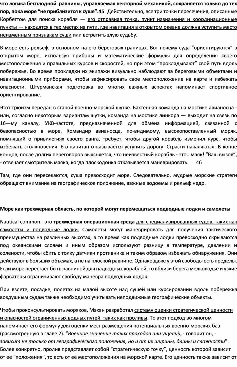 В-третьих, это не какой-то беспристрастный обзор предмета. И уж тем более это не краткое изложение всего, что великие люди — Альфред Тайер Мэхэн и Джулиан Корбеттс — могли сказать о ведении дел в больших водах. Библиография трудов Мэхэна сама по себе является книгой. 3