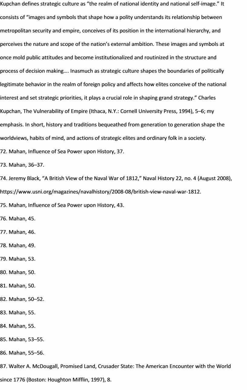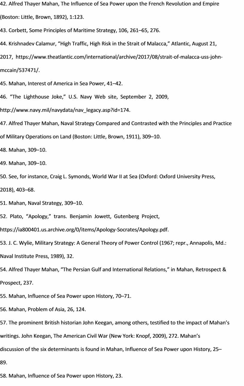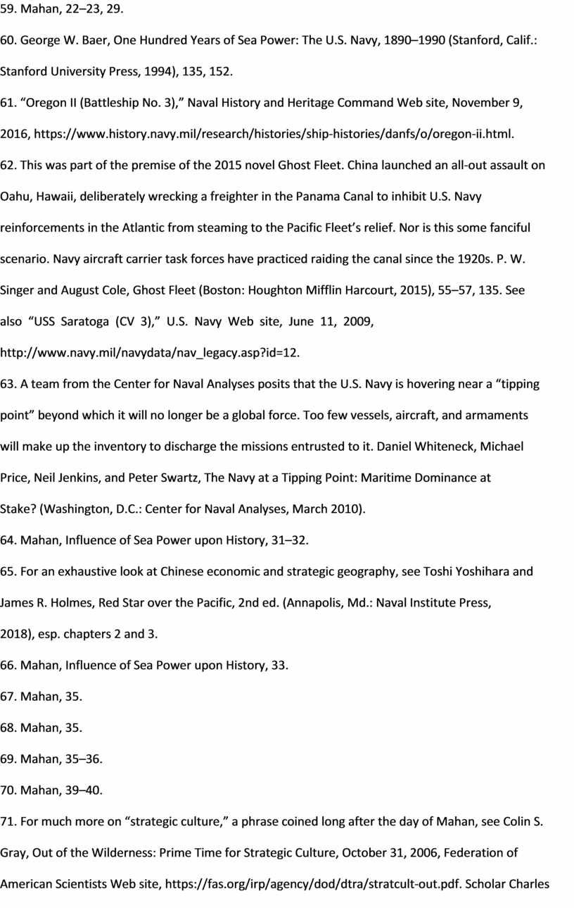 77. As indeed they might. Chinese strategists are avid readers of Mahan’s works, but they also consult