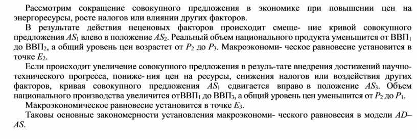 Рассмотрим сокращение совокупного предложения в экономике при повышении цен на энергоресурсы, росте налогов или влиянии других факторов.