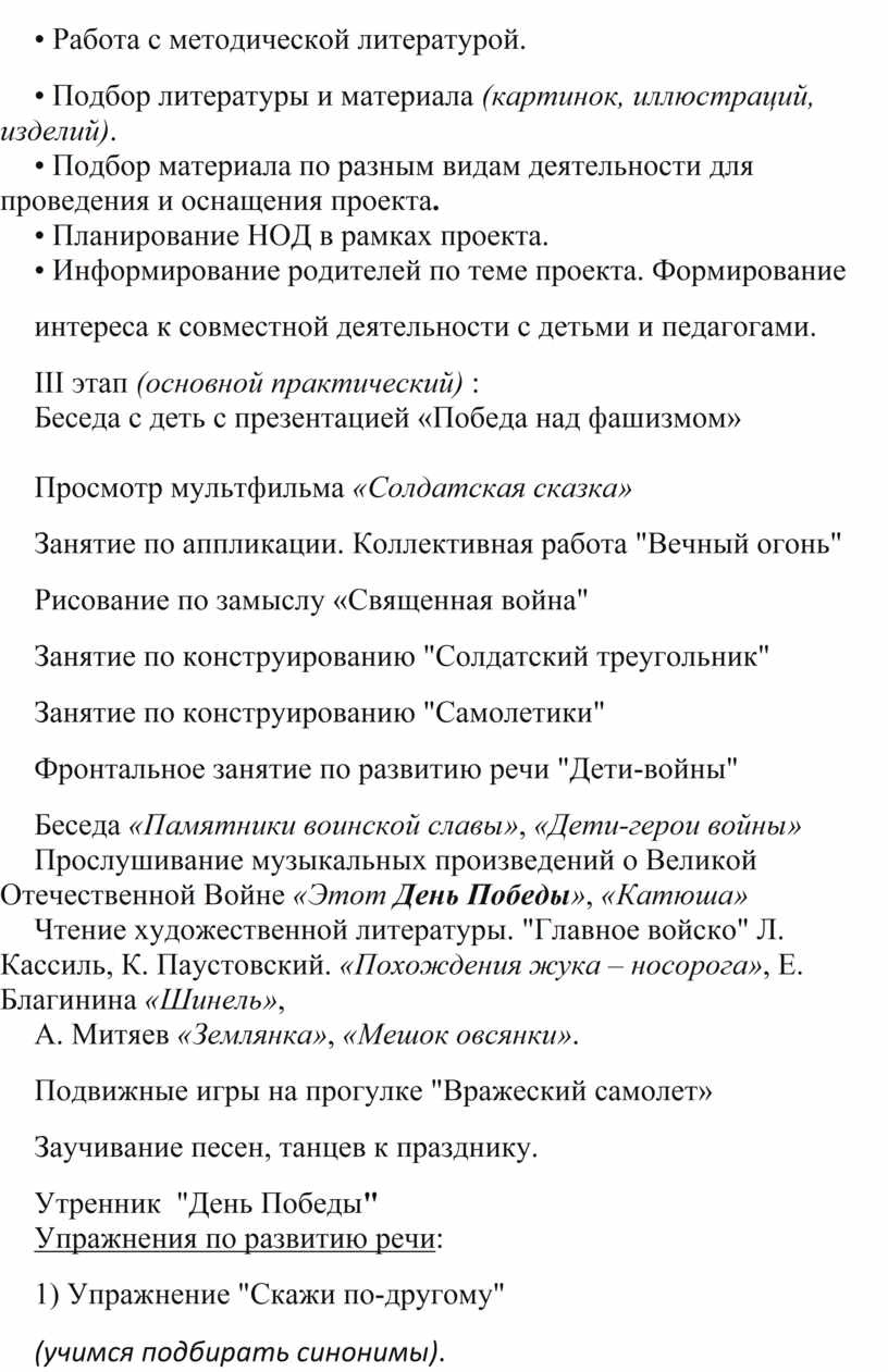 - расширение и активизация речевого запаса детей на основе углубления и обобщения представлений о Родине, о ВОВ, а также в процессе знакомства с рассказами, стихами, песнями;
