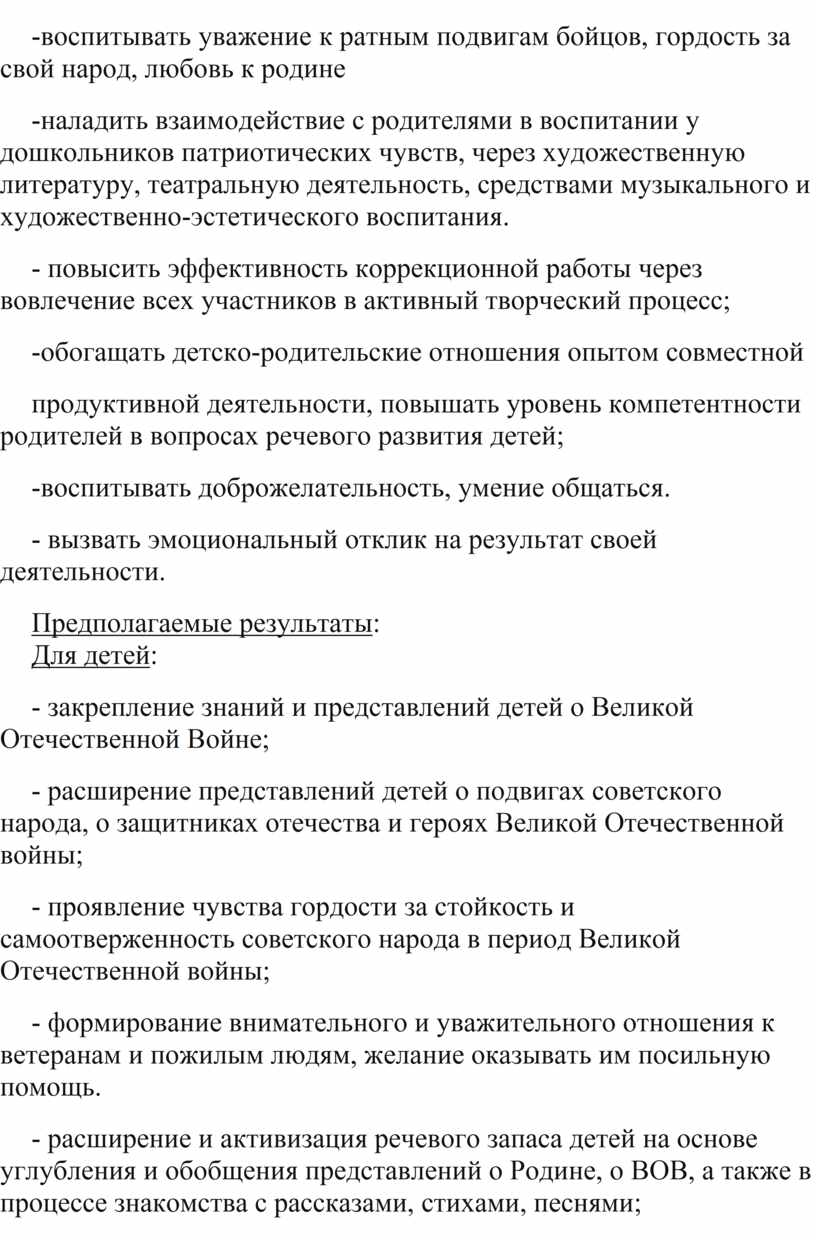 - расширение представлений детей о подвигах советского народа, о защитниках отечества и героях Великой Отечественной войны;