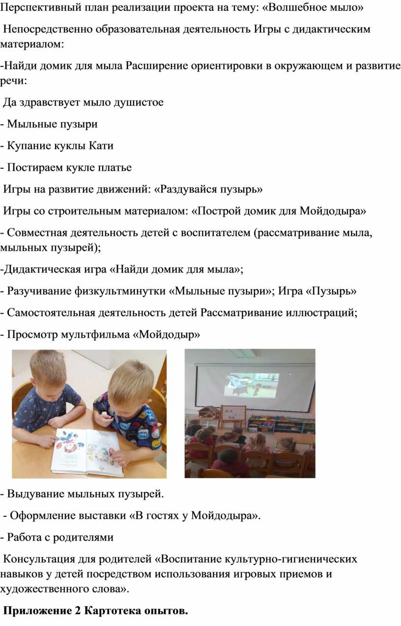 Перспективный план реализации проекта на тему: «Волшебное мыло»