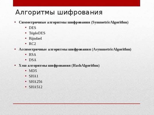 алгоритмов, таких как AES (Advanced Encryption Standard), DES (Data Encryption
