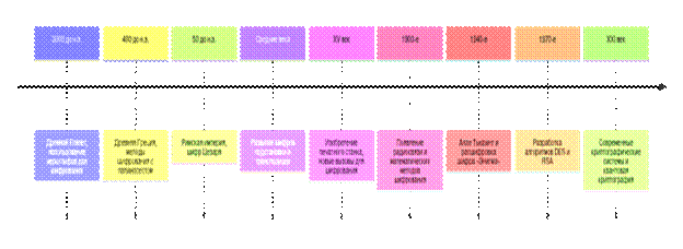 Первые известные упоминания о шифровании относятся к древним цивилизациям. Например, в Египте использовали иероглифы, чтобы скрыть значение текстов от непосвящённых. В Древней Греции существовал метод шифрования с использованием палимпсеста и навыка смещения букв, который на самом деле сохранял смысл, но затруднял понимание.