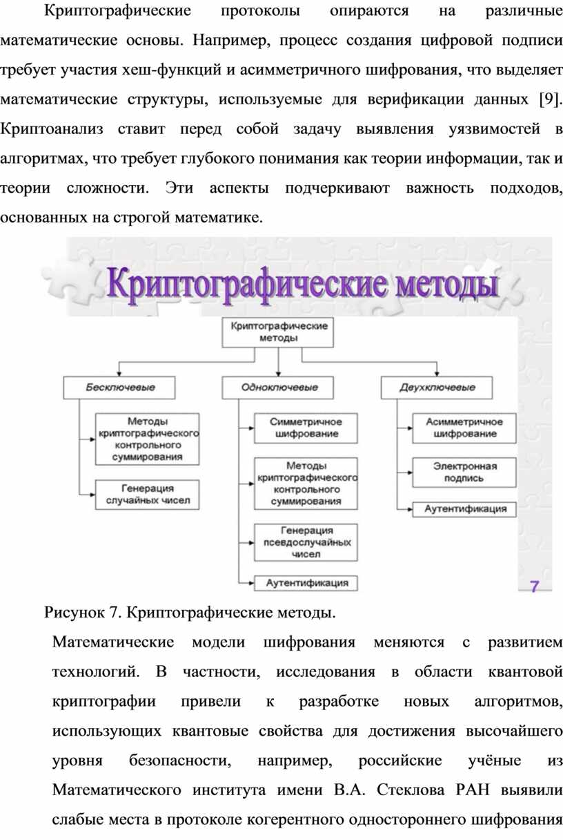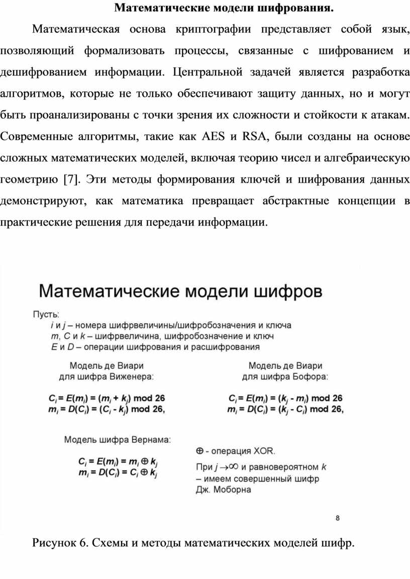 Рисунок 6. Схемы и методы математических моделей шифр.