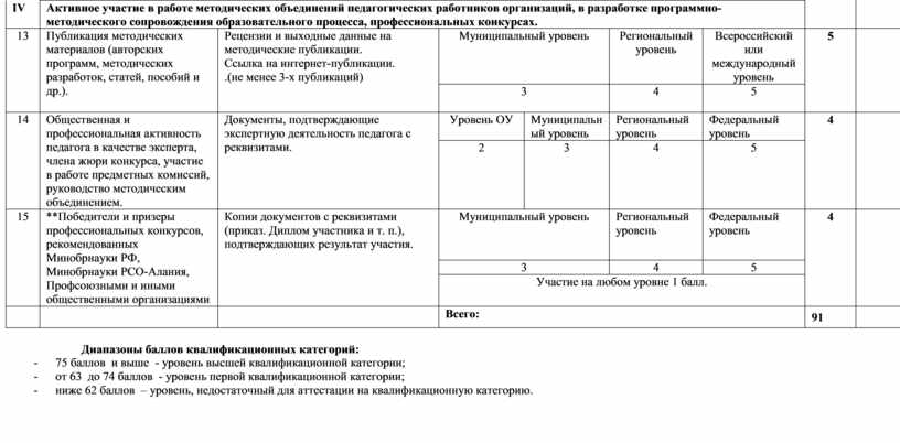 - 75 баллов и выше - уровень высшей квалификационной категории; |