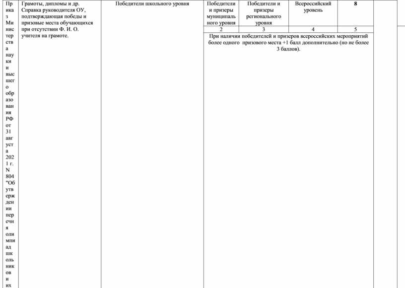 При наличии победителей и призеров всероссийских мероприятий более одного призового места +1 балл дополнительно (но не более 3 баллов). |