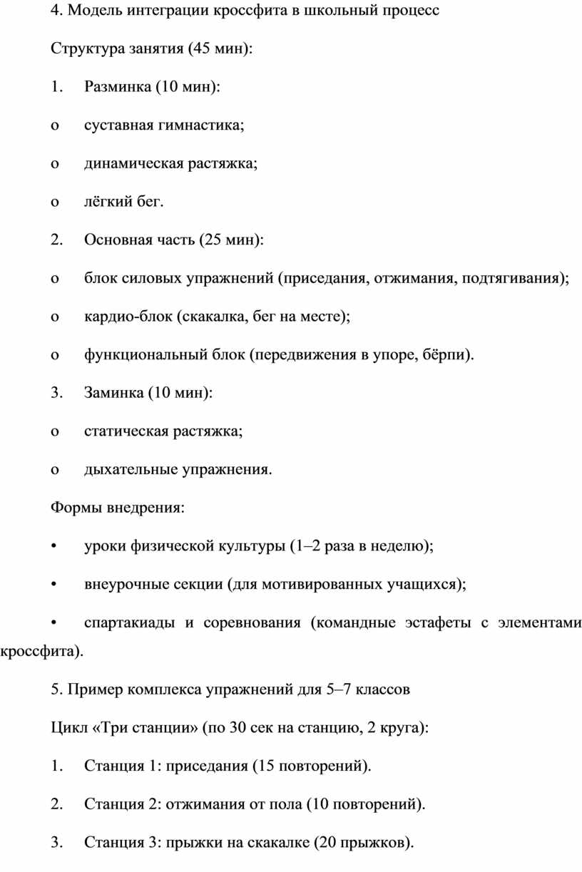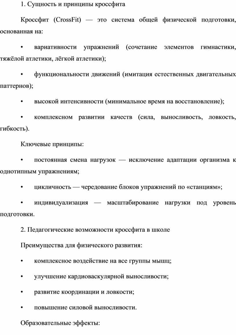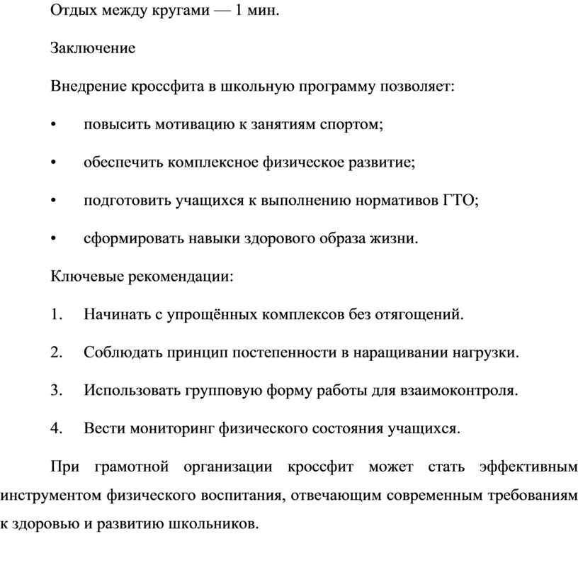 При грамотной организации кроссфит может стать эффективным инструментом физического воспитания, отвечающим современным требованиям к здоровью и развитию школьников.