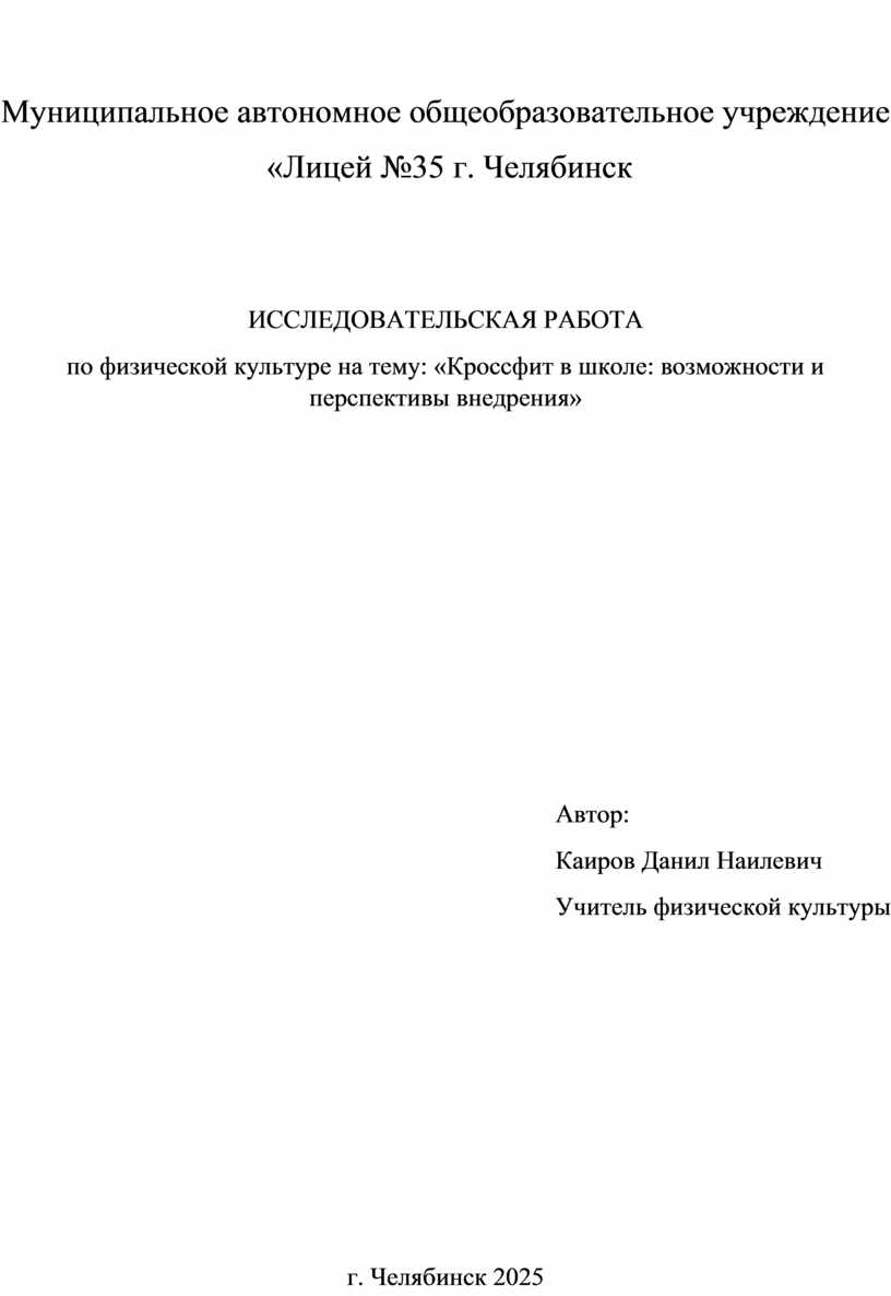 по физической культуре на тему: «Кроссфит в школе: возможности и перспективы внедрения»