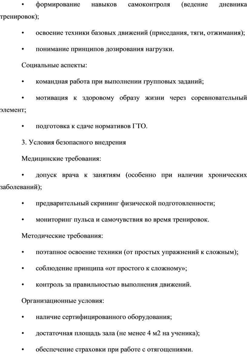 • определить условия безопасного внедрения кроссфита в школьную программу;