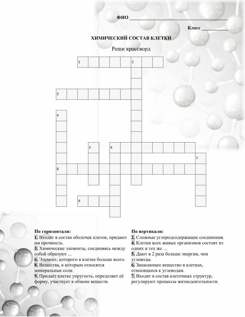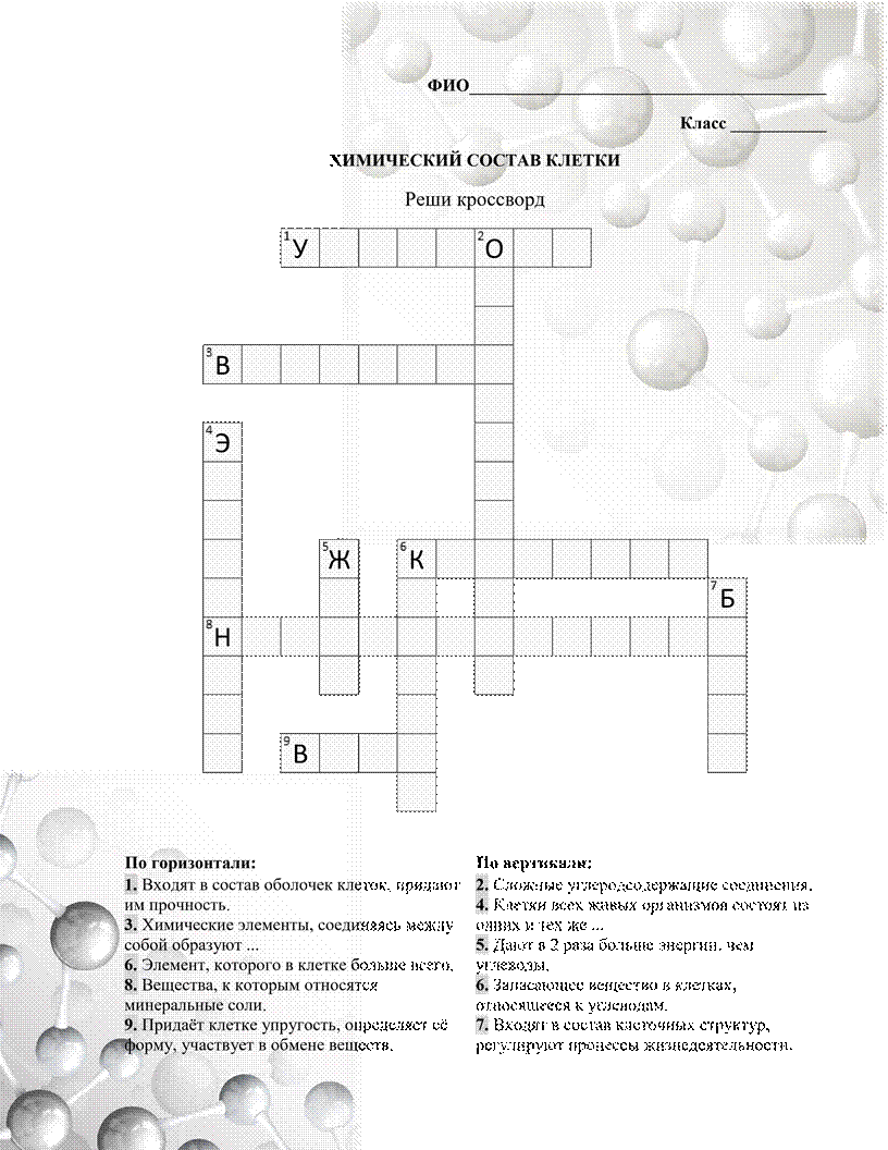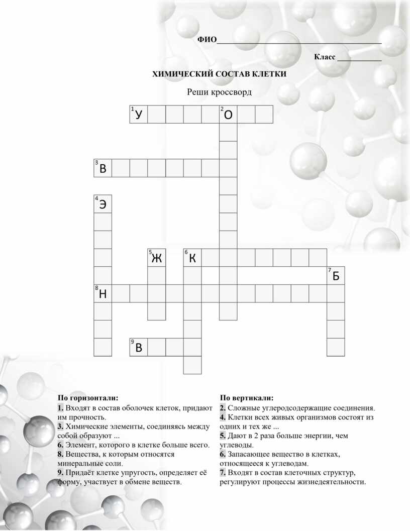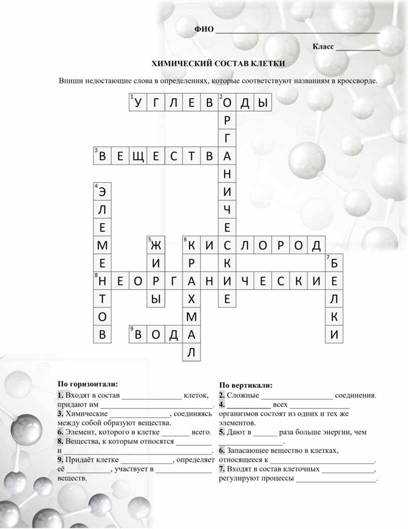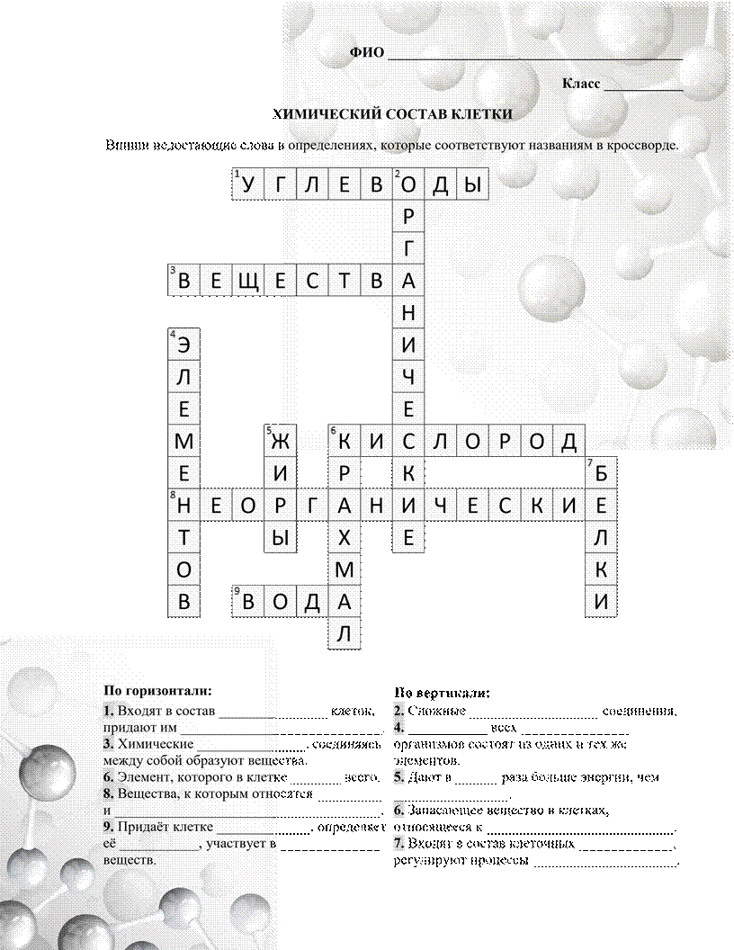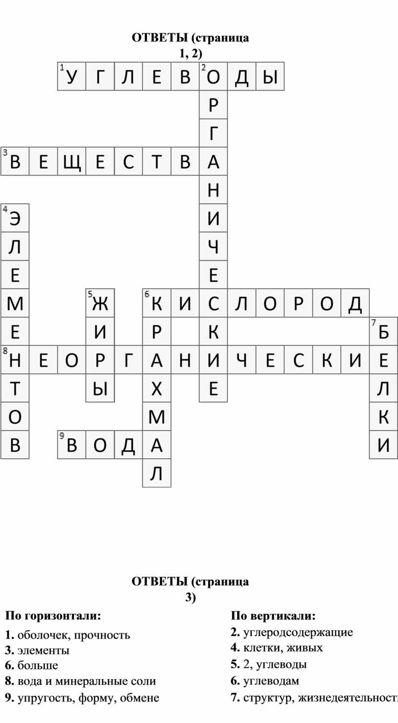 По вертикали: 2. углеродсодержащие 4. клетки, живых 5. 2, углеводы 6. углеводам 7. структур, жизнедеятельности |
