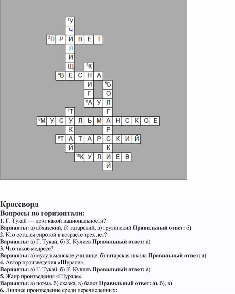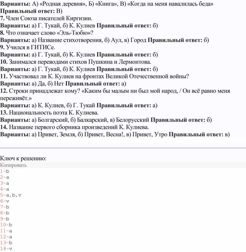 · Варианты: а) К. Кулиев, б) Г. Тукай Правильный ответ: а)