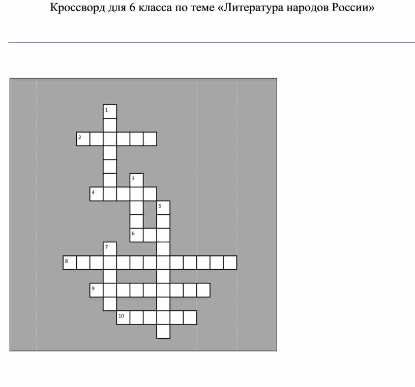 Кроссворд для 6 класса по теме «Литература народов России»