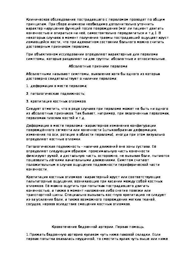 Абсолютными называют симптомы, выявление хотя бы одного из которых достоверно свидетельствует о наличии перелома: