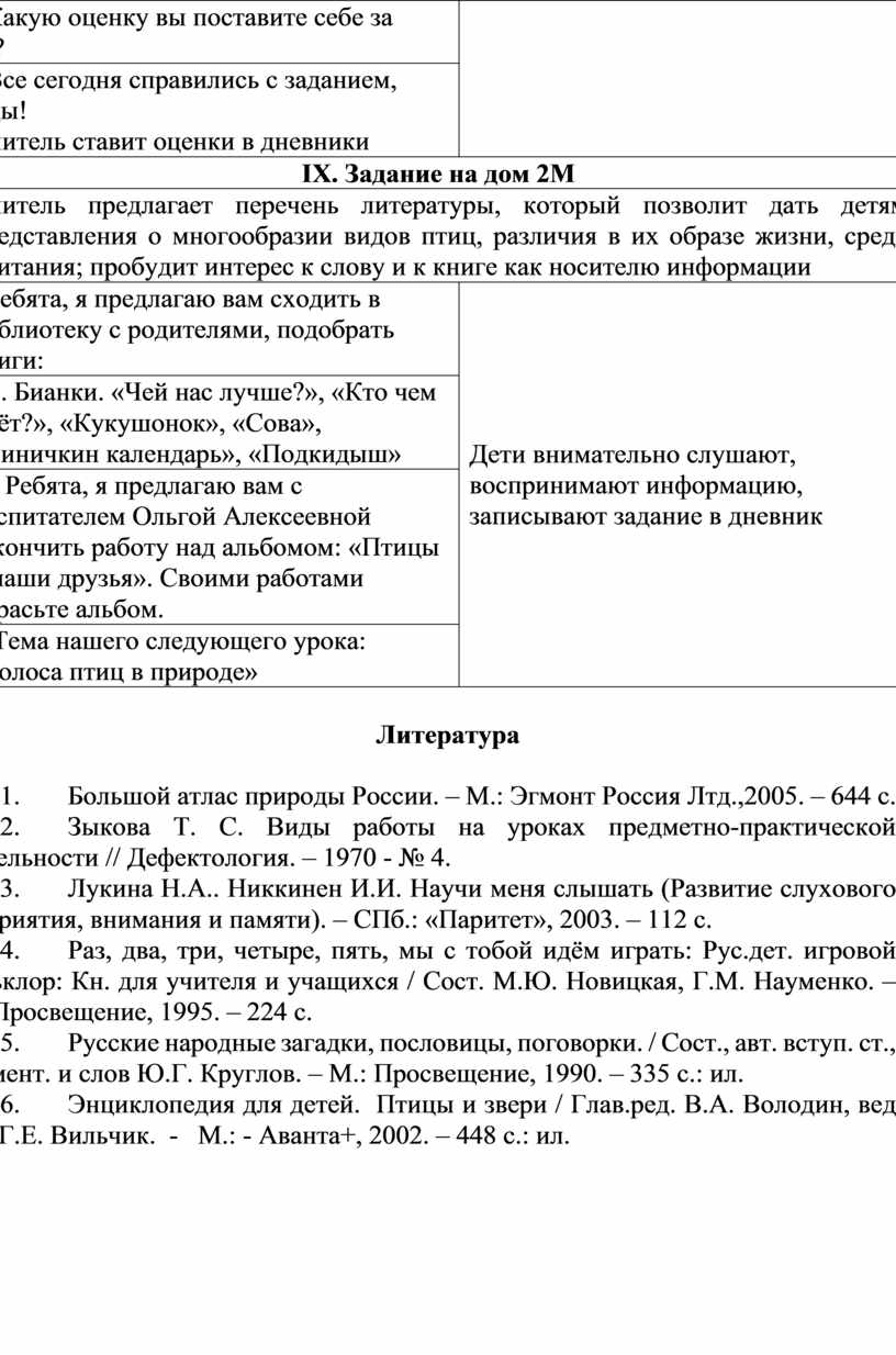 Учитель предлагает перечень литературы, который позволит дать детям представления о многообразии видов птиц, различия в их образе жизни, среде обитания; пробудит интерес к слову и к книге как носителю информации |