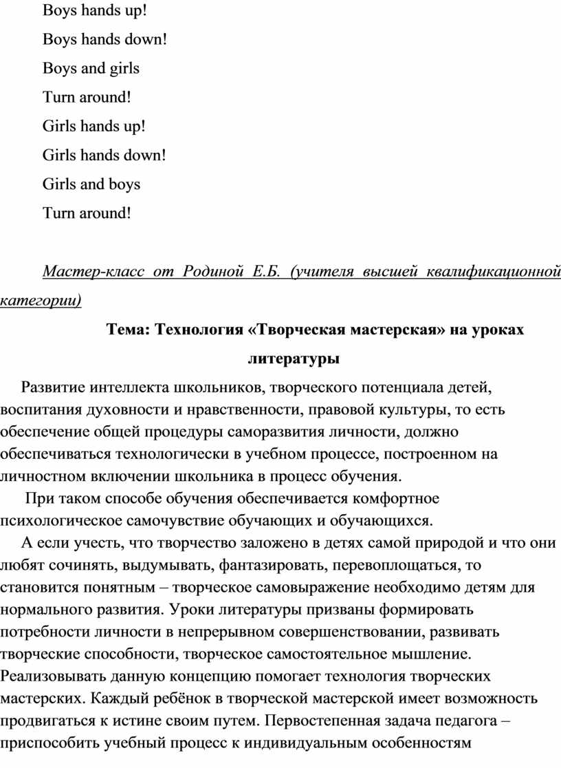Мастер-класс от Родиной Е.Б. (учителя высшей квалификационной категории)