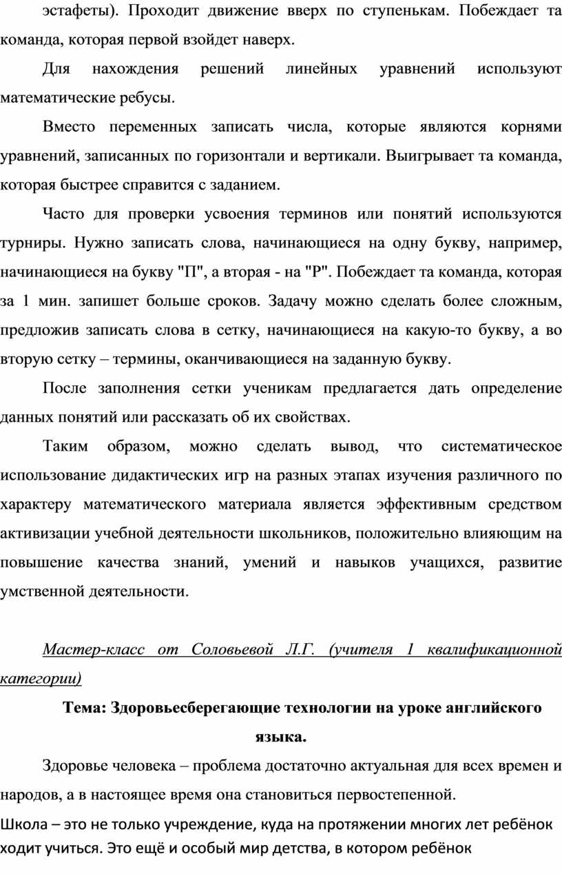 Мастер-класс от Соловьевой Л.Г. (учителя 1 квалификационной категории)