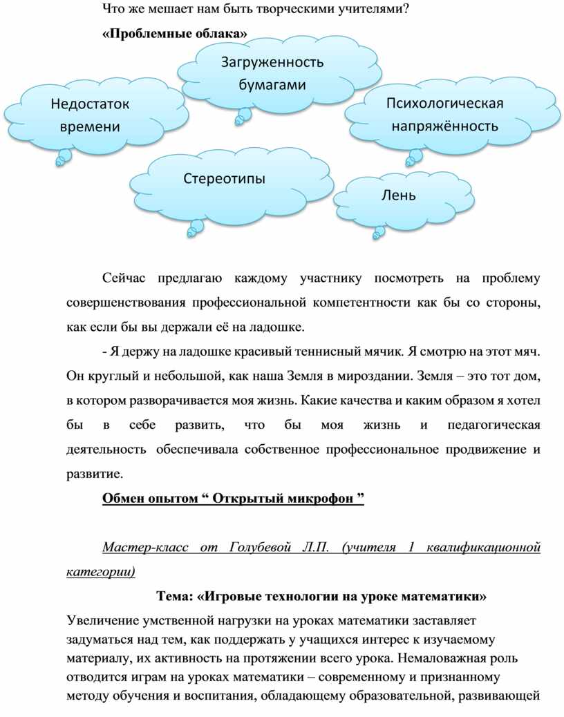 Сейчас предлагаю каждому участнику посмотреть на проблему совершенствования профессиональной компетентности как бы со стороны, как если бы вы держали её на ладошке.