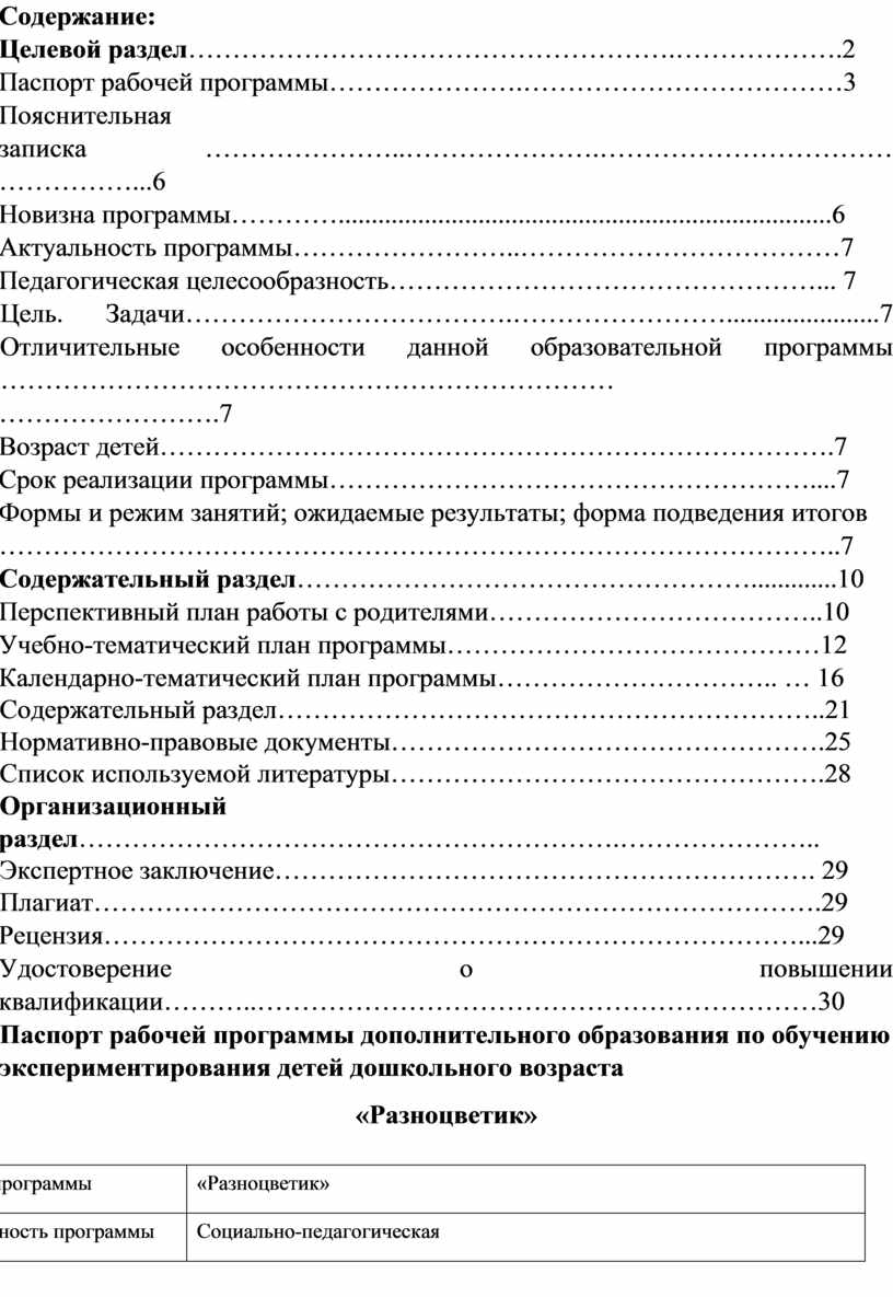 квалификации………..………………………………………………………30 Паспорт рабочей программы дополнительного образования по обучению экспериментирования детей дошкольного возраста