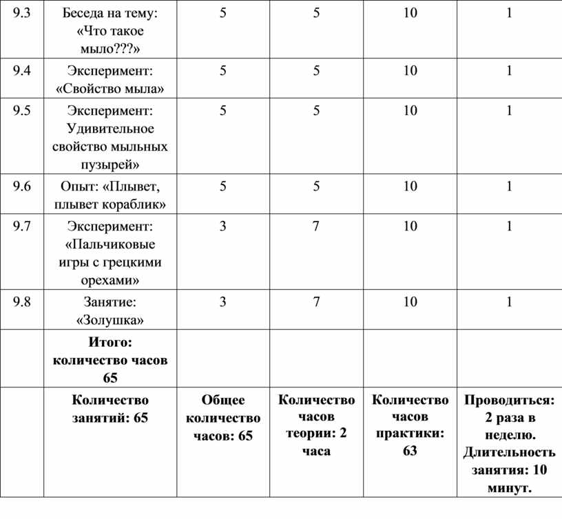 Проводиться: 2 раза в неделю. Длительность занятия: 10 минут. |