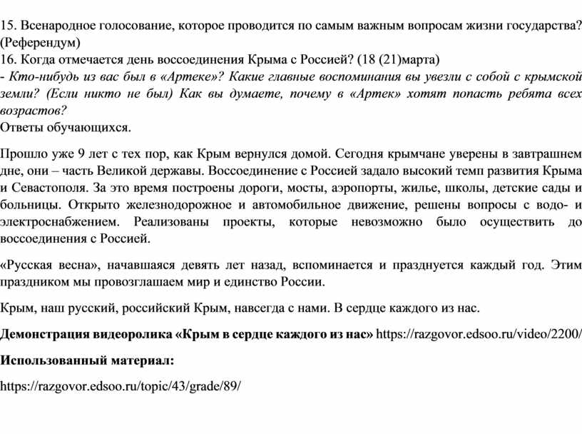 (День воссоединения Крыма с Россией 5 класс)